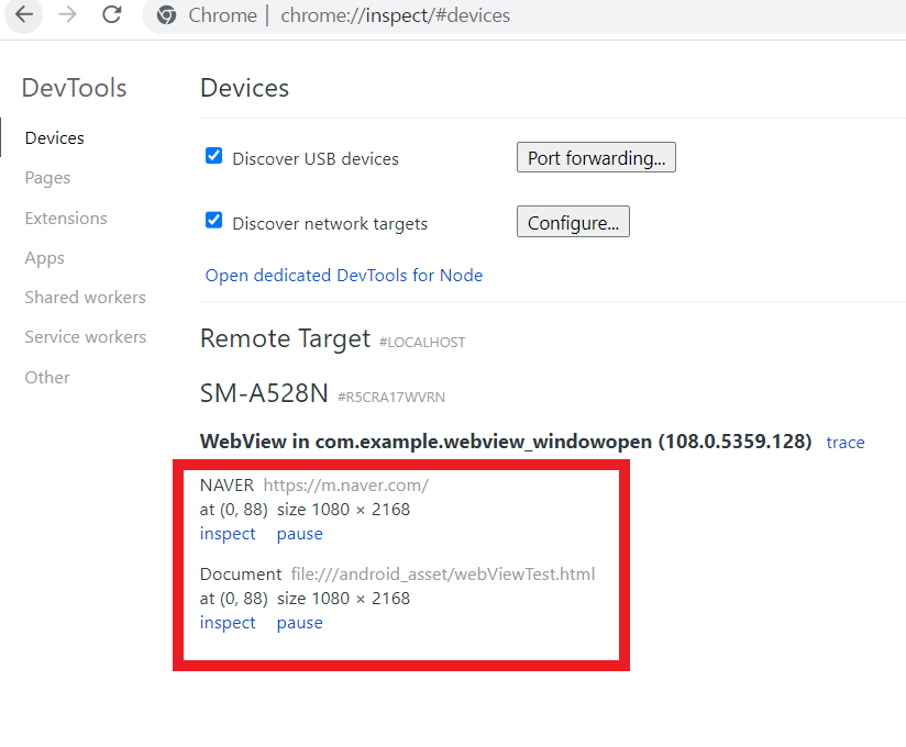 <chrome://inspect 를 이용한 디버깅>